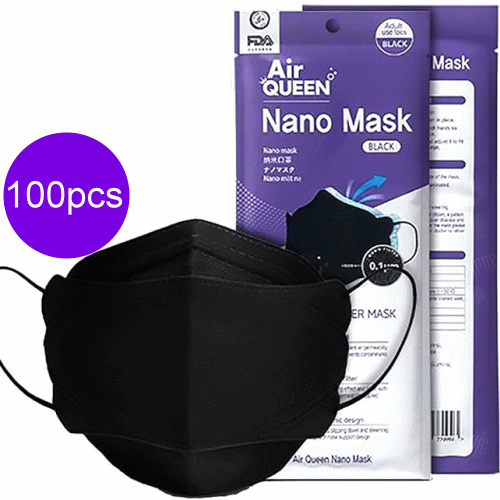 Air queen Nano Filter Face Mask for Adults, Lightweight and Breathable with Soft and Elastic Ear Loop, Reusable (Black) 100pcs
